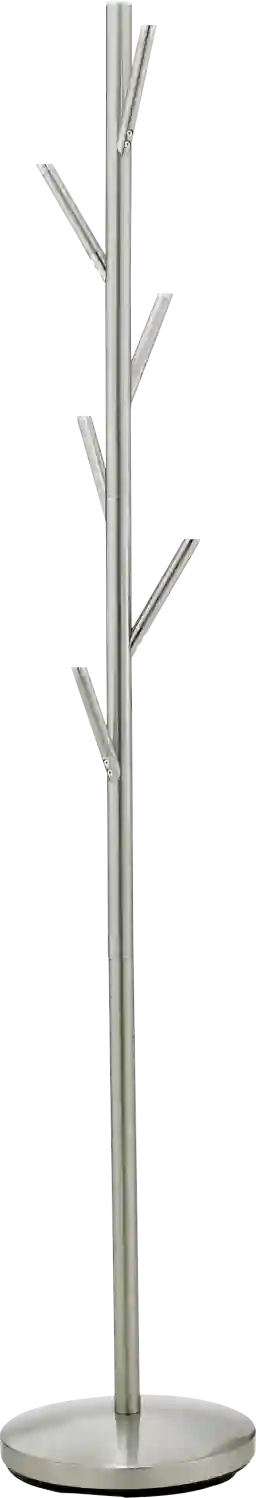 With angled pegs resembling the branches of a tree, the Eastport coat rack is as much sculpture as practical accessory. Six 5.5" hooks extend from the center pole leaving a minimal footprint. Some customer assembly required.