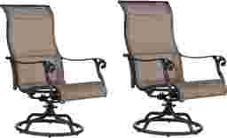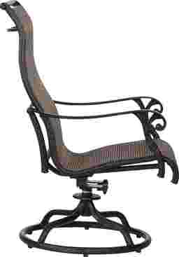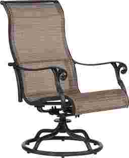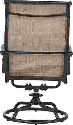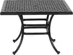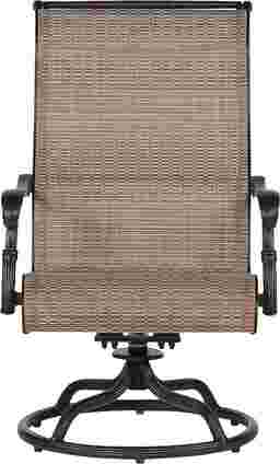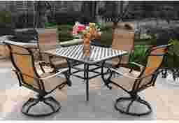 If you are looking to make the most of your outdoor space, start with the Eastport Manor Bronze 5 Pc Outdoor Square Dining Set. This 5-piece outdoor dining set includes 4 sling swivel chairs and a square dining table. Made from heavy cast aluminum finished with a high UV-resistant powder coating, this sets offers reassuring durability and a polished look to your outdoor dining area. The chairs feature a brown sling seat and sport an antique bronze finish that works well with a variety of color palettes. Customer assembly required. The sling fabric is 70% PVC and 30% polyester yarn. To clean use a sponge or soft brush to apply a mild soap and warm water solution to the fabric, rinse thoroughly, and air dry. The 2" umbrella hole accommodates an umbrella with a pole diameter of 1.58 to 1.98 inches. Umbrella not included.