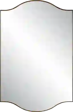 Featuring a gracefully arched top and bottom with sleek, straight sides, this Ebelle mirror is a perfect blend of contemporary style and classic charm. The iron frame, finished in a warm brushed gold, surrounds a floating mirror, appearing as though it is suspended within the frame.
