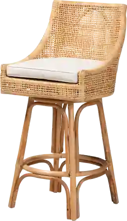 Encapsulate the charm of a tropical getaway in your space with the tranquil design of the Eccles brown bar stool. This bohemian piece consists of a natural rattan frame wrapped in woven embellishments. The removable seat cushion is padded with plush foam and upholstered in soft fabric for superb comfort. The Eccles features ergonomic footrests on each side for enhanced relaxation. With a 360 swivel seat for enhanced leisure, the Eccles brings a serene aura to any arrangement. Due to the nature of the natural materials used in this product, it may have variations in areas such as, but not limited to, color, pattern, grain and texture. The hair-like strands of rattan/rattan-fiber are common due to the nature of the material.