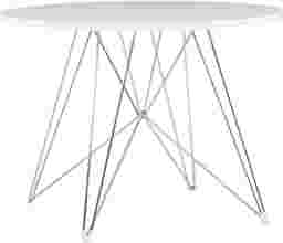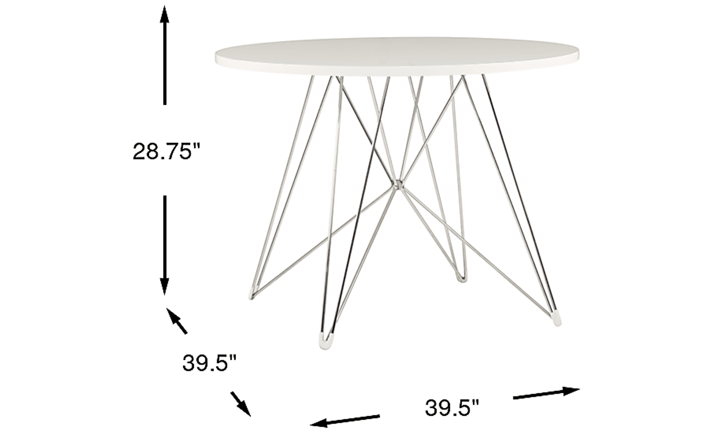 Make a contemporary statement for less with the Echo Park dining table. This sleek 39 inch round table has a smooth white top supported by a unique chrome base with a truly modern style. It's the perfect spot for breakfast for any casual meal.