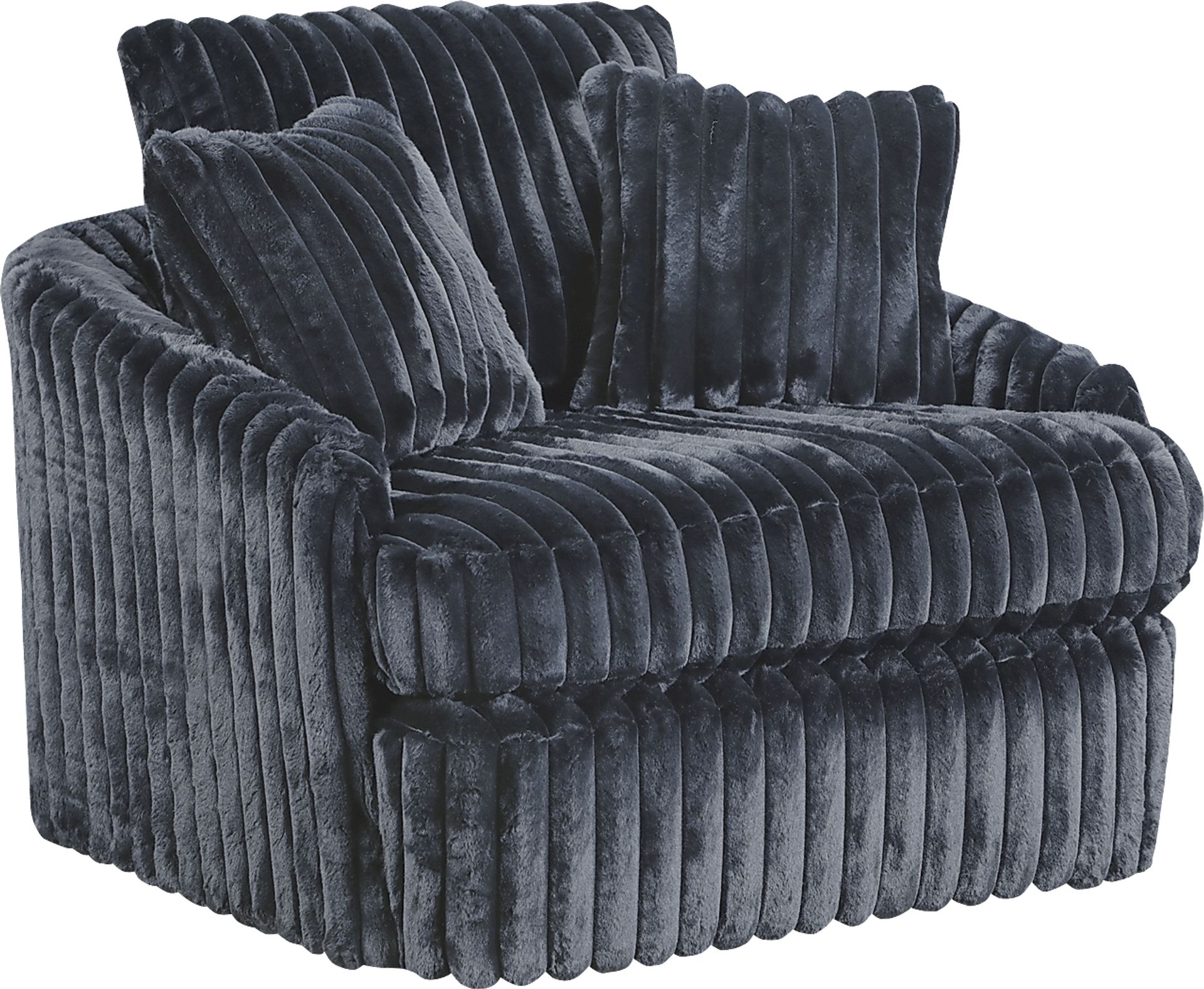 If you love the look and feel of corduroy, you'll be over the moon for the Eclipse swivel chair. Right at home in living rooms, dens and basements alike, this piece maximizes your comfort with plush cushions and a deep seat that makes relaxation easy. The chair is upholstered with soft fabric that has a ribbed texture and features a beautiful black color that complements the illustrious style details. The base's 360-degree swivel feature brings the look full circle. Upholstery: 100% Polyester.