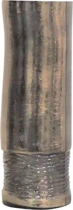 This piece is designed as a "Table Vase," making it a versatile centerpiece for a contemporary dining table or a striking accent for an entryway console. Its metallic bronze tone and textured pattern offer a sophisticated contrast when paired with natural wood furniture or placed alongside smoother ceramic jars. In smaller urban apartments, its narrow 5-inch profile allows it to add height and visual interest to mantels or bookshelves without occupying excessive surface area.