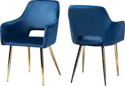 Enhance your dining space with the retro glamour of the Eden Croft side chair. Finished in gold tone metal with blue velvet polyester fabric. Reinvent your dining space with the retro glamour of the Eden Croft side chair. This metal chair is upholstered in a soft, sumptuous blue velvet fabric that feels exceptionally soft to the touch. Its slanted back and wide, foam-padded seat provide hours of dining comfort. Inspired by mid-century design, the Eden Croft features long, angled legs and a cut-out back. Customer assembly is required.