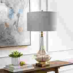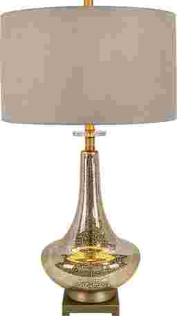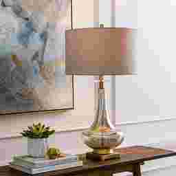 Brighten up your living space with the Edenderry Cay lamp. This traditional style lamp is the perfect addition to any home decor, bringing a touch of elegance to any room. This lamp features a mercury glass base and gold metal accents, combined with a light gray linen shade to create an eye-catching design. Standing at 31 inches tall, this table lamp is sure to be noticed. Add this stylish piece to your home today. Partial assembly may be required.