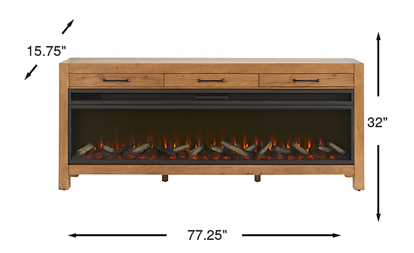 Balanced and versatile with an inviting blend of warmth and elegance, the Edgewater collection is crafted to elevate your home's entertainment center with sophistication and functionality. Transitionally styled with an earthy brown finish, this versatile console features three spacious drawers for storing away your entertainment essentials. Below the drawers is a removable log fireplace with flickering flames and faux embers, working with or without heat for a warm ambiance year-round.