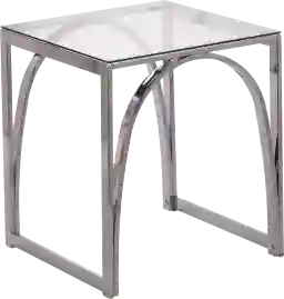 Modernize your living room look with this Edgeway glass-top end table. An architectural frame forms elegant curves for a sleek, shiny look, while the square glass tabletop offers ample space for a reading lamp and your morning cup of coffee. Accent your space with sophisticated flair when you top this side table with a single vase for a simple, minimalist feel or with family photos and trinkets for a personalized look. Slide this metal and glass end table alongside your sofa or armchair and keep contemporary convenience by your side. Customer assembly is required.