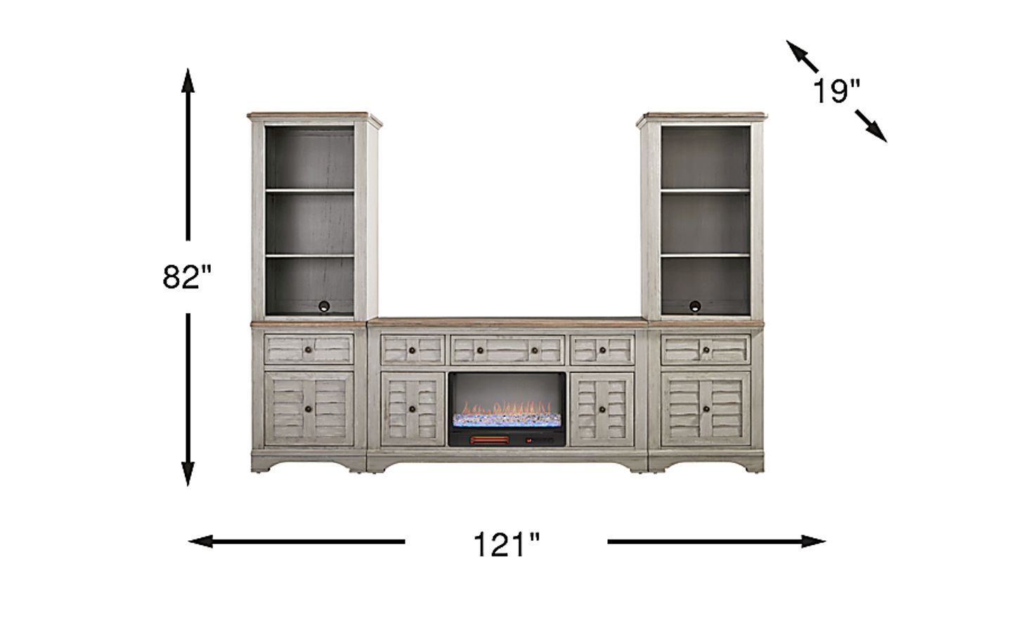 Edisto Bay Gray 3 Pc Wall Unit With 64 In. Console And Electric Fireplace
