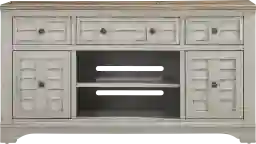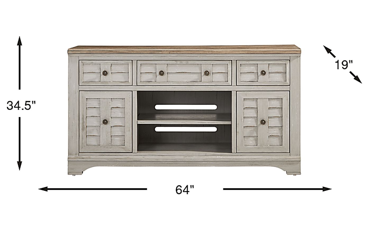 At 34.5 inches tall, this console is slightly higher than a standard media stand. This "tall console" design is specifically intended to provide a more ergonomic viewing angle if you are watching from a bed or a plush, deep-seated sofa. Additionally, the added height allows for the inclusion of paneled cabinet doors, providing extra storage space for everyday essentials while keeping them concealed behind a clean, coastal silhouette.
