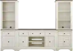 With a total width of 121 inches (just over 10 feet), this 3-piece wall unit is an ideal choice for anchoring a large feature wall or defining an entertainment zone within an open-concept floor plan. The combination of the crisp white finish and the coastal-inspired design ensures that despite its substantial size, the piece adds a bright, airy feel to the room rather than overwhelming it.
