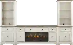 Edisto Bay White 3 Pc Wall Unit With 78 In. Console And Electric Log Fireplace