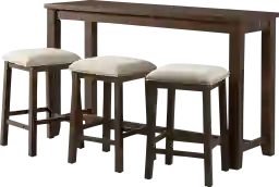 The Ekolu table set is the ultimate set for your home. This set can be placed anywhere in your home from a kitchen nook to a spot behind the sofa in the living room. Keeping your devices charged while you work wont be a problem thanks to the USB ports and power strip located on the side of the table. The barstools comes with an upholstered foam cushion seat making it easy to watch your favorite TV shows while you work without having to completely rearrange the couch to get you setup to finish up extra work. The dark walnut finish with cherry undertones will pair perfectly with any existing decor you have. Customer assembly required.