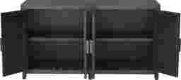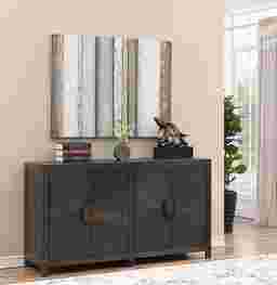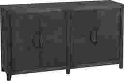 The four door Elanor credenza is finished in a deep distressed brown, radiating a classic look. The clean, straight line form provides an expansive surface for display, as well as maximum storage area on the shelved interior. Customer assembly is required. Customer assembly required.