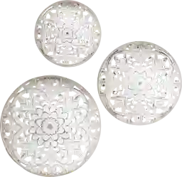 These pieces are ideally scaled for compact living. With each panel measuring 13.75 inches in diameter and only 1.5 inches deep, they provide visual interest and texture without protruding too far or overwhelming a smaller room. They are an excellent choice for adding a "charming touch" to apartment entryways, bathrooms, or narrow gallery walls.