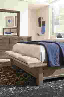 Sleek and simply designed, the Elba Lane bed has a relaxed, versatile style for your home retreat. Built with wood solids and oak veneers, this bedroom centerpiece displays a mink gray finish for a chic, upscale look. The panel headboard is upholstered in beige polyester fabric, fostering a warm, cozy feel for unwinding. At the footboard, an upholstered bench invites more functionality and comfort into your space. Mattress and foundation (if required) sold separately. Bed shown is queen size.