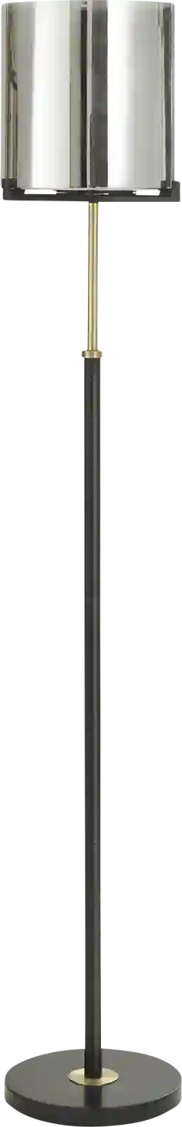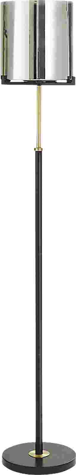 The Elber Black Floor Lamp boasts a sleek blend of metal and glass, perfect for adding a touch of modern flair to your living room or bedroom. Its simple elegance can fit perfectly in a home office or an entryway, seamlessly blending with various decor styles. Crafted with sturdy steel and topped with a uniquely processed smoked chrome drum shade, this lamp is a statement piece that speaks volumes of your aesthetic taste. Partial assembly may be required.