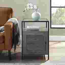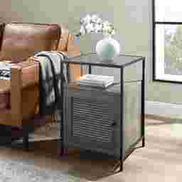 Let your sofa be lonely no longer! The Elderoaks contemporary side table will be the life of the party. Hide cozy blankets or books behind their fluted doors to keep your comfort items within close reach. The elevated, smoky glass tabletop will keep guests talking about your amazing design eye. The sofa will also definitely thank you for the character that this sophisticated end table brings to the living room. Customer assembly is required.