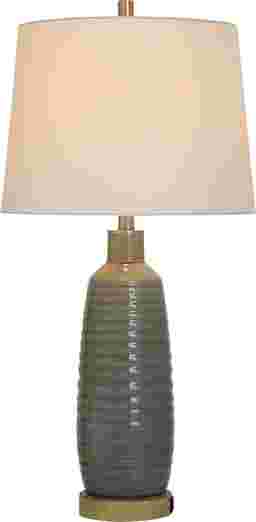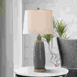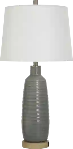 This lamp’s transitional design and neutral gray glaze make it a versatile anchor for many color palettes. In a transitional space, it pairs effortlessly with soft neutrals like cream, beige, or taupe to create a serene, sophisticated atmosphere. For a more dynamic setup, try placing it against a darker accent wall or pairing it with vibrant textiles in mustard yellow or deep navy; the gray base provides a clean, modern contrast that balances the room without overwhelming the decor.