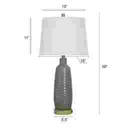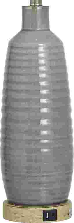 The Eldo Gray Lamp is a perfect harmony of modern simplicity and organic elegance. Its gently tapered ceramic base, finished in a rich gray glaze with subtle horizontal ridges, exudes artisanal charm, while the warm wooden accent at the bottom adds a touch of natural sophistication. Topped with a crisp white shade, it casts a soft, inviting glow that transforms any space into a serene retreat. Ideal for a bedside table or a cozy reading nook, this lamp is more than lighting-it's a statement of style and tranquility. Partial assembly may be required.