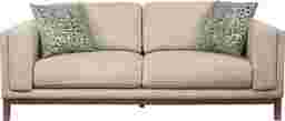 A collected calm settles the moment the Elena Court collection delivers a lived-in ease that feels refined without feeling formal. This transitional sofa showcases a tailored silhouette and a rich beige woven fabric that reads warm and grounded. Clean track arms keep the profile crisp and modern, while box-style seat cushions and neatly scaled back cushions create a supportive, lounge-ready sit. The dark brown finished base lifts the frame for a lighter, mid-century-leaning touch that still feels classic. Upholstery: 100% polyester.