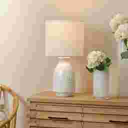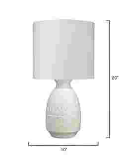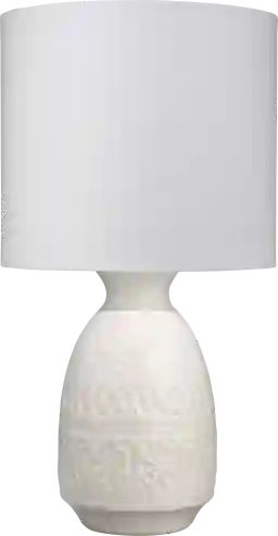 Quietly intricate and endlessly inviting, the Eliaso White Lamp feels like a small luxury meant to be noticed up close-its softly embossed ceramic base adding a layer of texture and story, while the clean white shade pours out a warm, gentle light that makes a room feel instantly calmer and more complete. It carries an artisanal charm that blends effortlessly with both cozy and refined spaces, turning everyday moments into something a little more intentional, so bring it into your home and let it become the subtle beauty that makes your space feel truly yours. Partial assembly may be required.