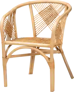 Grant a tranquil, calming mood to every dining occasion with the carefree design of the Elijane brown armchair. This chair is comprised of a natural rattan frame with bamboo-like embellishments. Its rounded backrest features intersecting accents for a stunning display, while sloping armrests curve around the frame for enhanced comfort. The Elijane will arrive fully assembled and utilizes angled legs connected by a crisscross base for excellent stability and support. Proficient at transforming the temperament of any occasion, the Elijane is an impactful addition to any arrangement. Due to the nature of the natural materials used in this product, it may have variations in areas such as, but not limited to, color, pattern, grain and texture. The hair-like strands of rattan/rattan-fiber are common due to nature of the material. Customer assembly is required.
