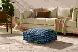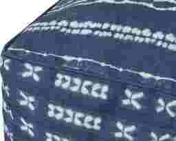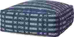 This Elim extra-large floor pouf with a traditional indigo design can be used as an accent piece or extra seating in your living room. The pouf measures 24"W x 24"D x 8"H and is machine-woven of polyester and linen.