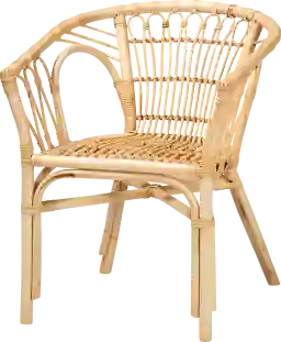 Boast an exotic ambiance during any occasion with the remarkable Elinaor brown armchair. This chair is comprised of a natural rattan frame with bamboo-like embellishments. Its rounded backrest curves around to serve as sloping armrests while forming a smooth silhouette. The Elinaor will arrive fully assembled and utilizes angled legs connected by a crisscross base for excellent stability and support. Perfect for granting a carefree mood, the Elinaor transforms any dining experience. Due to the nature of the natural materials used in this product, it may have variations in areas such as, but not limited to, color, pattern, grain and texture. The hair-like strands of rattan/rattan-fiber are common due to nature of the material.