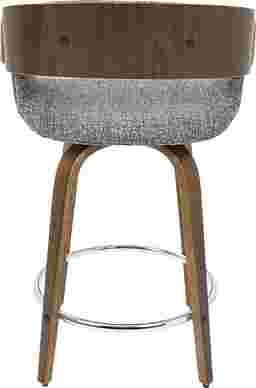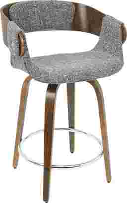 Perfect for your mid-century inspired space, the Eliza gray counter height stool has a walnut wood construction, stylish gray woven fabric upholstery and a sturdy chrome footrest. Ultra versatile, the Elisa is great for use in any kitchen, bar, or break room. Some customer assembly required.