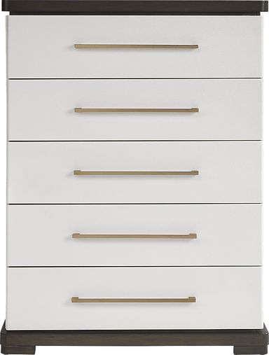 Experience the peak of contemporary luxury and create a truly stunning escape with the Elko Falls bedroom. Every surface in this white set works in harmony to create the perfect environment for the integrated LED lights in the headboard and beveled glass mirror to truly shine. Metal drawer pulls in a rubbed gold finish add a handsome shine to the included dresser. Soft upholstery and bold outlines of dark espresso help create the illusion that this whole set is floating on air - which is exactly how you'll feel when you come home to it every day. Mattress and foundation (if required) sold separately.