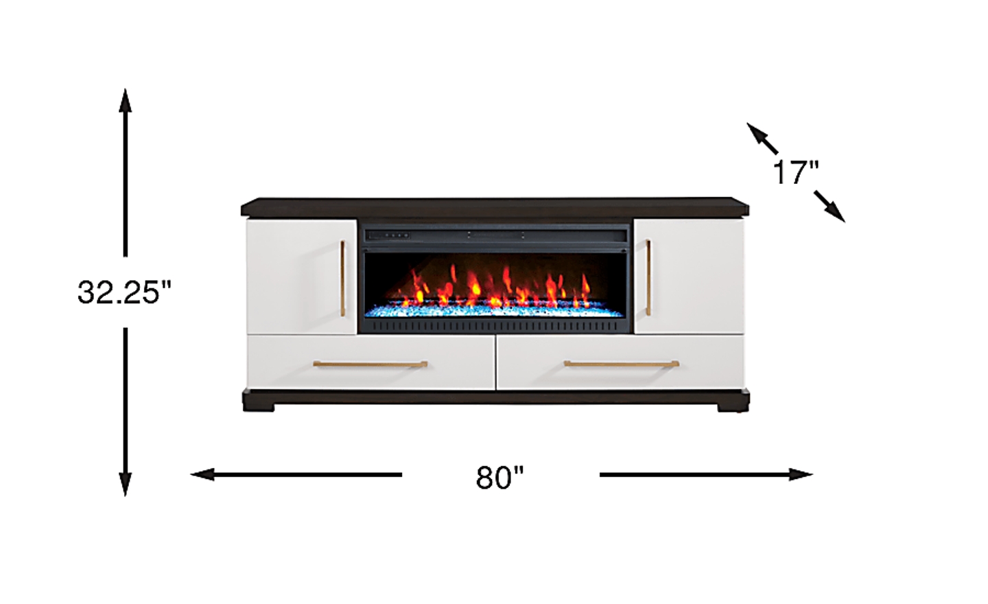 Experience the peak of contemporary luxury and create a truly stunning space with the Elko Falls collection. Featuring a multi-tone approach to contemporary design, the top of this entertainment console is crafted in a rich espresso finish followed by a midsection in a bright white color. The base puts on a leggy display with tapered feet finished in the same color as the tabletop. Two drawers and cabinets provide easy storage, while the energy-saving LED firebox at the center provides remote-controlled heat and ambient lighting. Choose from four color-changing options and create a warm and cozy atmosphere at the touch of a button. The oversized bar pulls in a gold finish on each drawer and door completes the look in epic fashion.