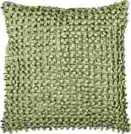 Sure to catch the eye, the Ella Cate accent pillow encompasses chic style with a looped woven design. The bright shade of grassy green combined with a cozy texture creates an inviting look that translates from space to space. One 18 inch square accent pillow. 100% Polyester