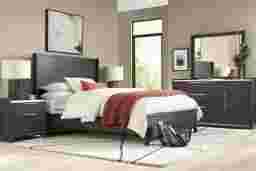 Bringing a fresh meditation on the endless appeal of organic patterns and sensibilities, the Ellenbrook bedroom skillfully plays nature-inspired beauty against exacting angles to breathtaking effect. A headboard and footboard with alternating high-low panels showcase woodgrain designs in a black finish, poised on a set of tapered legs. The matching dresser includes elongated metal bar pull hardware, a cabinet with three shelves and a marble-patterned top to heighten the contemporary style. The included mirror can be mounted to the dresser to complete the look. Mattress and foundation (if required) sold separately.