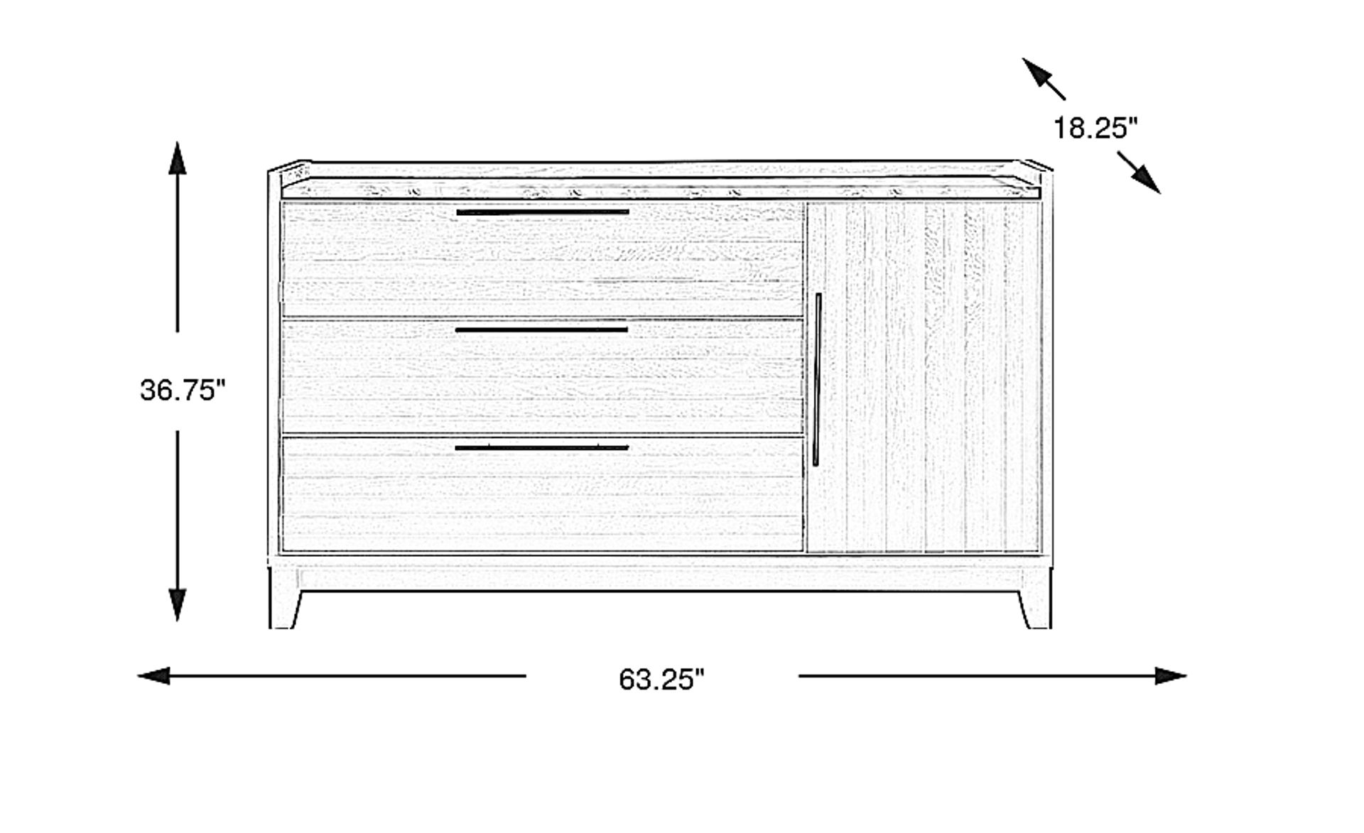 Bringing a fresh meditation on the endless appeal of organic patterns and sensibilities, the Ellenbrook dresser skillfully plays nature-inspired beauty against exacting angles to breathtaking effect. This accent showcases woodgrain designs in a brown finish while elongated metal bar pull hardware and a marble-patterned top heightens the contemporary style. Three drawers and a cabinet with three shelves complete the look.