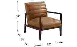 Inspired by mid-century modern design, the Ellenwood accent chair brings classic charm to your home. Supple leather upholstery makes it an instant staple, boasting a versatile saddle brown. This chair features wooden legs and arms with an open concept construction. Channeling detail on the fabric emphasizes its vintage look. Upholstery: Top grain leather where the body touches with polyurethane sides and backs.