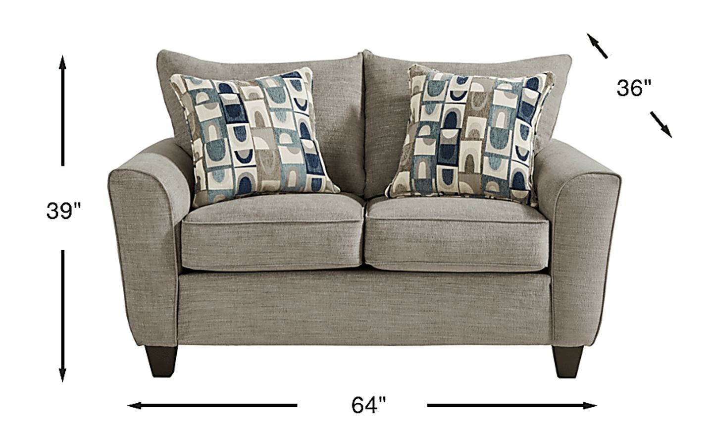 Where the rush stops and life catches its breath to settle in for some well-earned relaxation, the Ellsworth collection opens the door to easy everyday calm. This transitional loveseat is the picture of comfort with gray chenille upholstery and welted seams throughout. This piece features inviting scatterback pillows and loose seat cushions framed with generous flare arms. Coordinating pillows add a stylish touch of adjustable comfort. Completing the look, tapered block legs in a warm brown finish bring timeless, tidy poise. Upholstery: 100% polyester.