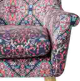Invest in a custom made accent chair that is thoughtfully executed and extremely well crafted. Uncomplicated in appearance yet well made and attractive, this mid-century modern chair is a delight to behold and features a roll back arm design. This piece offers a sturdy frame and tapered wooden legs that speak to smart functional design. A carefully stretched covering of beautiful paisley like finishes the overall look, and the piece is completely hand upholstered-with attention given to every last detail. Customer assembly is required. This piece is made to order and may take up to 6 weeks to deliver.