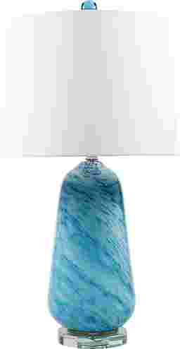 Transform your space with the Elmere Bend Blue Lamp-where artistry meets functionality. Crafted from stunning blue confetti glass, it sits atop an acrylic base. Complemented by a white tapered drum shade and matching finial, it adds modern elegance. Illuminate your space with sophistication. Partial assembly may be required.