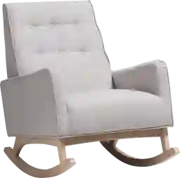 Sophisticated style and smooth, calming lines come together in the Elmorado rocking chair. This mid-century modern-inspired rocking chair features grayish beige fabric upholstery with button-tufting details and a subtle piping design. The low-profile Elmorado rests on solid, whitewashed rubberwood legs. This rocking chair is foam padded, with the arms at an ergonomically designed height to make it easy to get cozy and stay relaxed. The Elmorado is a stylish and comfortable addition to your nursery, livingroom, or any shared space. Customer assembly is required.