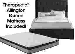Add instant elegance to your existing decor with the Elridge bed. Exquisite diamond button tufting on the headboard combines with chic nailhead accents for a stunningly contemporary look. Soft black upholstery is timelessly elegant. Offering a firm, supportive feel with the cushioned comfort of a euro top layer, the Therapedic Allington mattress has layers of TheraCool Quilt Gel and a flexible TheraCoil Plus innerspring system to provide a restorative night's rest. An included bed board eliminates the need for a traditional boxspring foundation. Mattress and bed board included. 1 Year Warranty on Therapedic Allington Mattress.