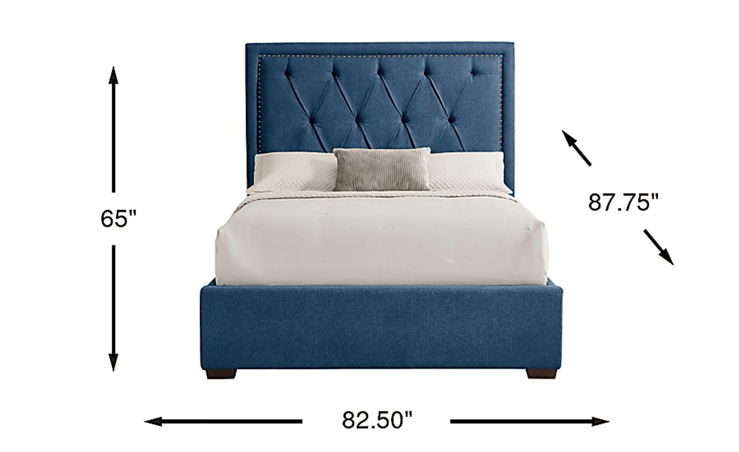 The quiet luxury that lingers like the afterglow of a glamorous night out emanates from the Elridge II collection as its luminous detailing shapes a space for elevated living. Fully upholstered in a rich blue fabric, this contemporary bed features a headboard with deep diamond tufting framed by a golden nailhead trim for a refined, modern edge. Clean lines and a low-profile silhouette keep the look fresh and sophisticated. Mattress and foundation (if required) sold separately. Upholstery: 100% polyester.