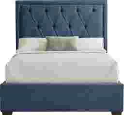 The quiet luxury that lingers like the afterglow of a glamorous night out emanates from the Elridge II collection as its luminous detailing shapes a space for elevated living. Fully upholstered in a rich blue fabric, this contemporary bed features a headboard with deep diamond tufting framed by a golden nailhead trim for a refined, modern edge. Clean lines and a low-profile silhouette keep the look fresh and sophisticated. Mattress and foundation (if required) sold separately. Upholstery: 100% polyester.