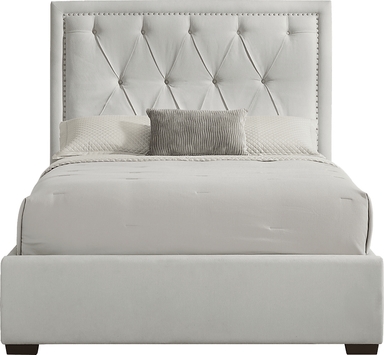 The quiet luxury that lingers like the afterglow of a glamorous night out emanates from the Elridge II collection as its luminous detailing shapes a space for elevated living. Fully upholstered in a soft gray fabric, this contemporary bed features a headboard with deep diamond tufting framed by a golden nailhead trim for a refined, modern edge. Clean lines and a low-profile silhouette keep the look fresh and sophisticated. Mattress and foundation (if required) sold separately. Upholstery: 100% polyester.