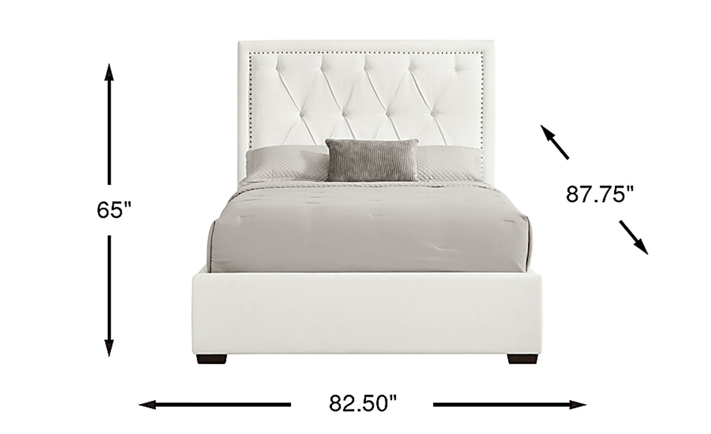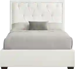 The quiet luxury that lingers like the afterglow of a glamorous night out emanates from the Elridge II collection as its luminous detailing shapes a space for elevated living. Fully upholstered in a soft white fabric, this contemporary bed features a headboard with deep diamond tufting framed by a golden nailhead trim for a refined, modern edge. Clean lines and a low-profile silhouette keep the look fresh and sophisticated. Mattress and foundation (if required) sold separately. Upholstery: 100% polyester.
