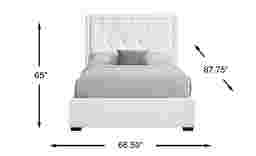 This bed is an excellent option for smaller bedrooms or urban apartments. While the queen dimensions are standard (66.5"w x 87.75"d), its low-profile silhouette and clean contemporary lines prevent it from overwhelming a room visually. The sophisticated white upholstery and tapered legs create an airy, elevated look that helps a space feel more open and modern.
