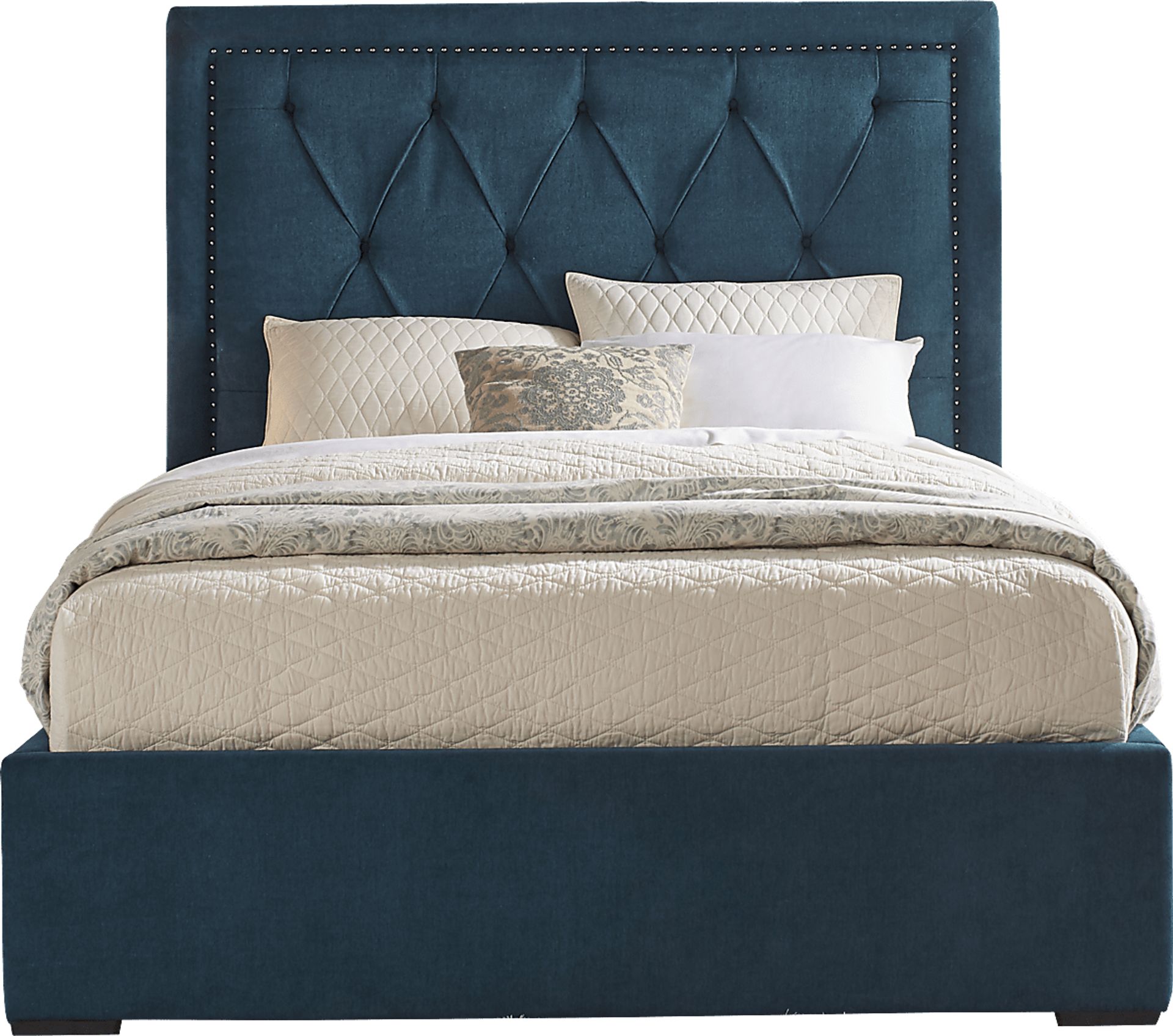Add instant elegance to your existing decor with the Elridge bed. Exquisite diamond button tufting on the headboard combines with chic nailhead accents for a stunningly contemporary look. Soft teal upholstery is timelessly elegant. Mattress and foundation (if required) sold separately. Bed shown is queen size.