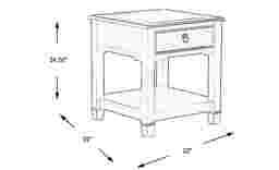 The unique design and robust color of the Elshan end table adds sophistication with a warm, welcoming touch. Constructed of poplar wood solids with birch veneers, the rich look is heightened by chrome feet and pulls. A drawer and bottom shelf provide ample space for storage and showcasing decor.