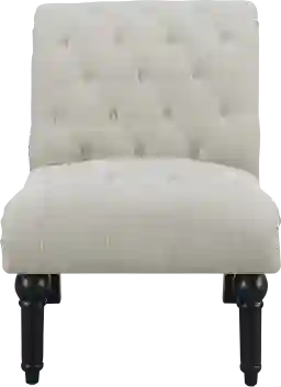 The stylish, tufted Elstree accent chair will add sophistication to any room. The plush fabric cover has generous button tufting and brushed nailhead trim. The tapered wooden bun legs add to its uniqueness and style. Customer assembly is required.