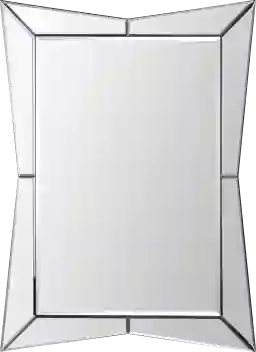 This piece features an all-glass mirror design in a unique shape with beveled mirrors.