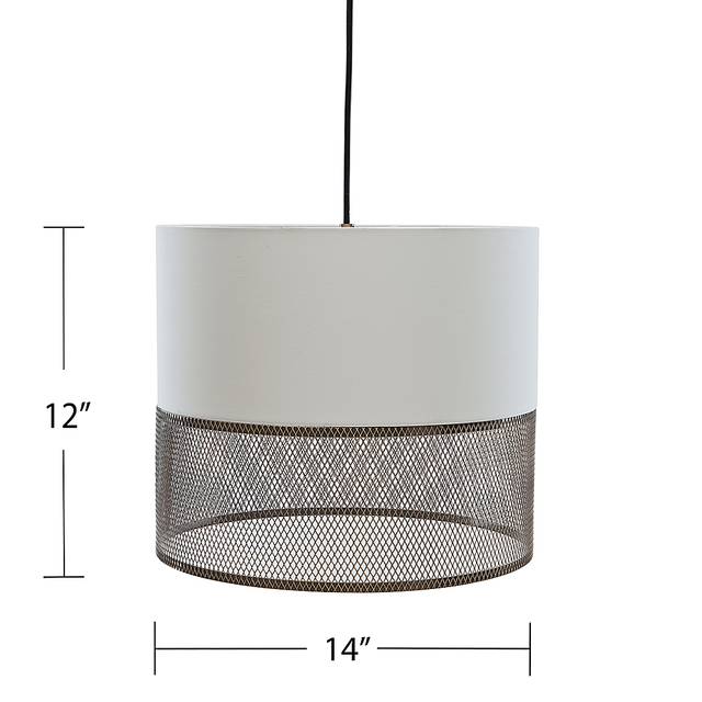 Classic, mid-century modern style gets a modern makeover with the Elyse Court pendant chandelier. A white cotton barrel shade fills the room with light, contrasting with the wide band of antique brass mesh. Hang in your entryway and shine the spotlight on a warm welcome for guests. Professional electrician recommended for installation.